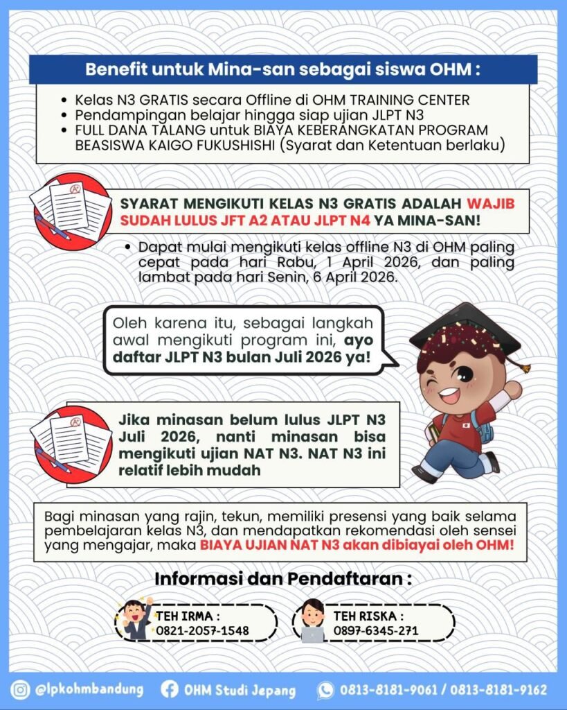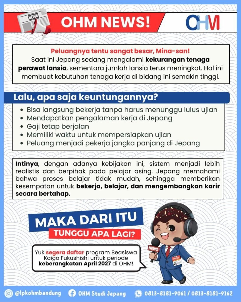 Berita terbaru ini mencakup informasi seputar seminar, lapangan pekerjaan, acara, kegiatan, testimoni, dan informasi lainnya terkait keberangkatan ke Jepang atau OHM.